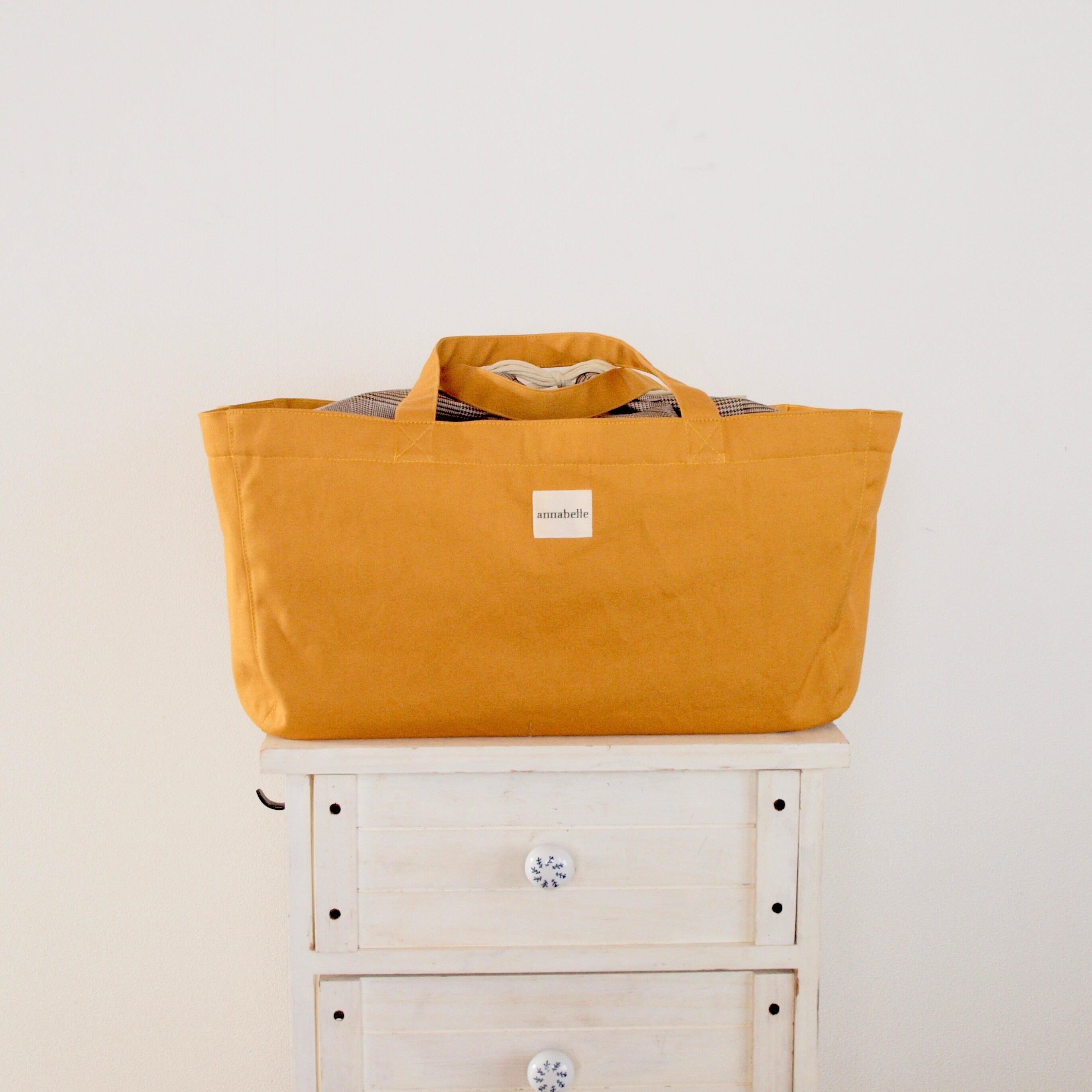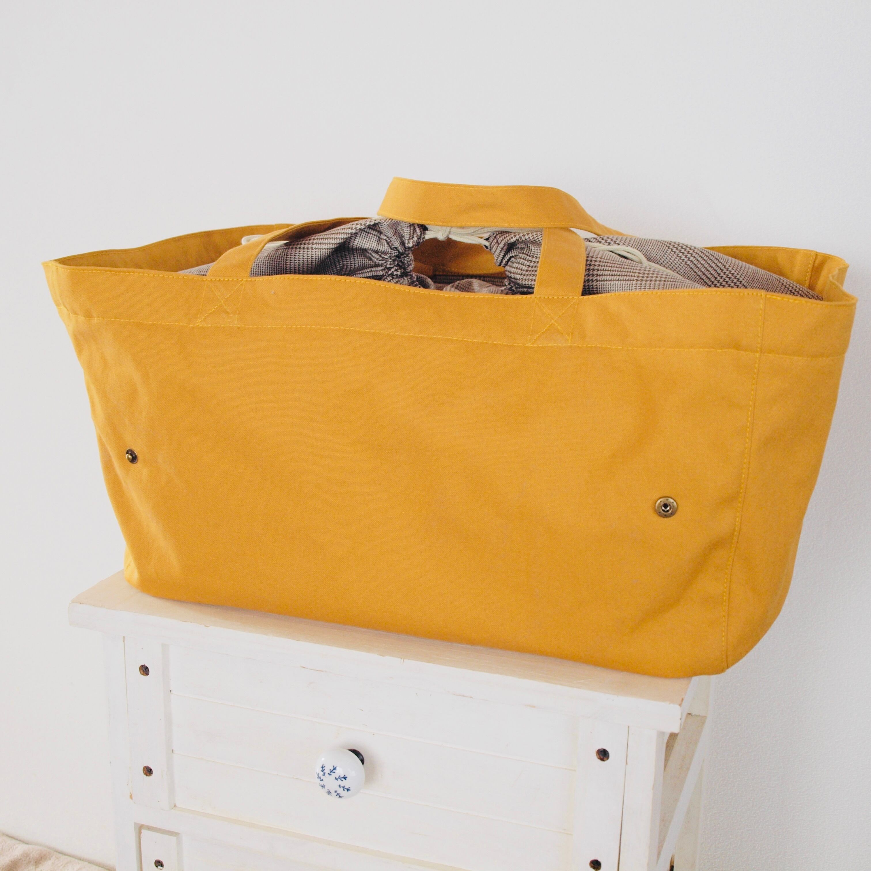 ○受注生産○大容量の帆布バッグ【マスタード】キャンプの調理道具入れにおすすめ!